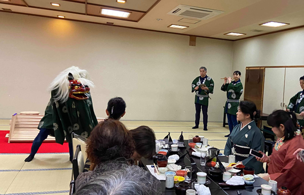 その後、割烹「福登美」さんで昼食をいただいた後、伝統和芸を鑑賞。獅子舞や箏曲などで日本の新春を堪能しました。