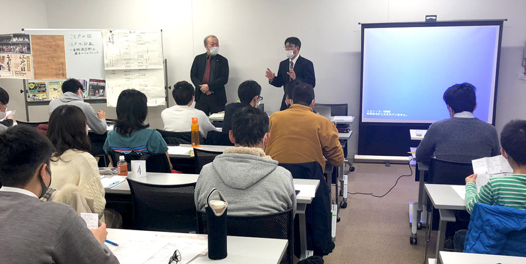 毎年、川越では春まつりが開催される時期に一番街商店街にて開催される「江戸の日」※があります。「江戸の日」はまるで江戸時代にワープしてしまったような感覚に陥ってしまう、一番街商店街の皆さまの江戸時代の粋な商人のふるまいを体感できるイベントです。第5回ワークショップは、その「江戸の日」の事前学習を行いました。