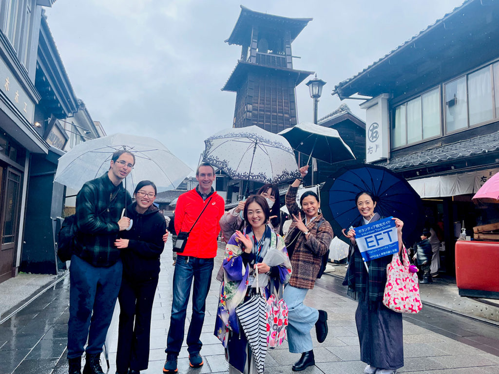 天気予報に一喜一憂しながら迎えた3月25日(土)はあいにくの雨模様でしたが、小江戸川越春祭りのオープニングとなる“江戸の日”イベントは雨にも負けず開催され、第27回ワークショップとなる“江戸の日散策ツアー”も12名もの外国人ゲストに参加いただき開催いたしました。