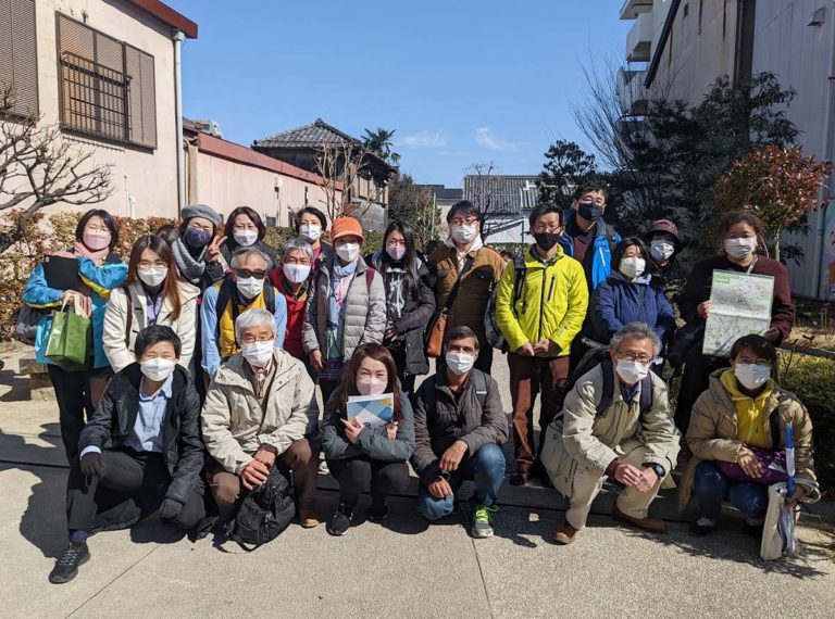 実地研修では、講座のスタート時に配布したテキストと音声教材で学んだ喜多院〜氷川神社〜一番街を市内大学の留学生を中心とした外国人の方たちと一緒にグループで周ります。